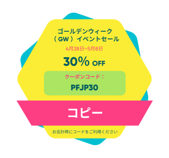 ゴールデンウィーク(GW)にあたって、PassFab社は皆様からの日頃のご愛顧をご感謝するため、PassFab社全製品に対して30%割引を提供しております。割引クーポンの利用期限は2023年4 月28日〜 2023年5月8日までです。ぜひお見逃しなく。30%割引クーポン:PFJP30