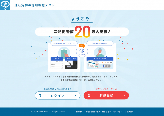 このような背景から、当社は、超高齢社会における安全なカーライフをサポートする目的で、運転免許更新時に認知機能テストが手軽に受けられるサービスを提供しています。2023年4月の時点で、このサービスは20万人以上の方々に活用されています。