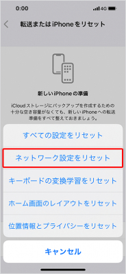 ステップ4:「ネットワークの設定をリセット」を選択します。