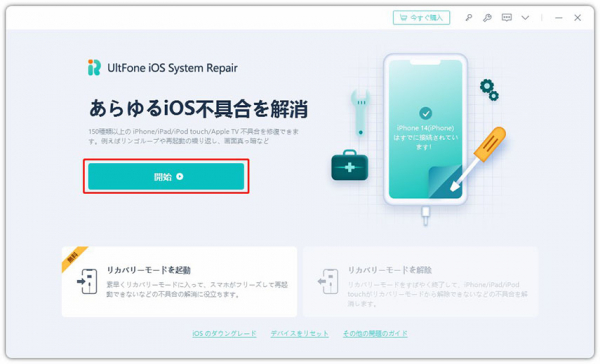 ステップ1:このソフトをPCまたはMacにダウンロードし、実行します。次に、USBケーブルを使用してiOSデバイスをコンピュータに接続します。メインインターフェースで「開始」ボタンをクリックします。