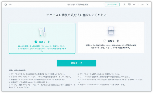 ステップ2:「普通モード」オプションを選択して進みます。
