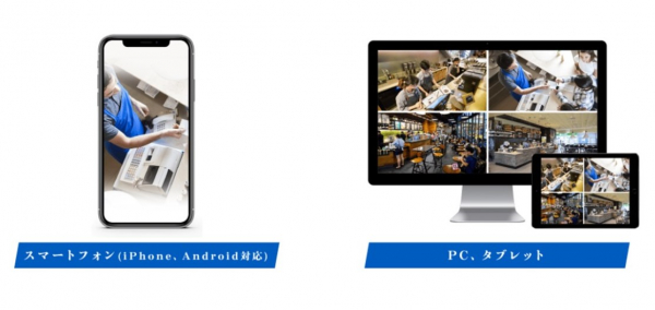 「しゃべるカメラ」では、PCやタブレットはもちろん、スマートフォンでも現場のライブ映像を見ることができるため、場所を問わず監視をすることができます。