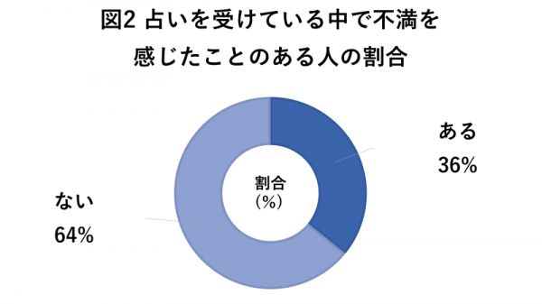 占いを受けている中で不満を感じたことのある方は36%に対し、感じたことがない方は64%みられました。