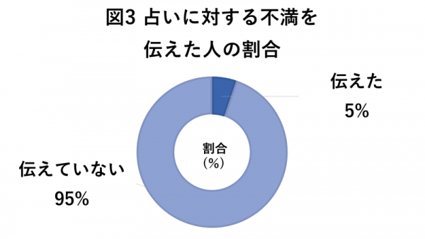 結果、不満を伝えたという方はわずか5%。ほとんどの方が占いに対する不満を伝えずに我慢していることが分かりました。