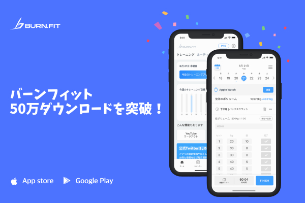 アプリ一つで簡単に管理できるスマートフォン向け筋トレ記録アプリ「バーンフィット」、累計ダウンロード数50万人を突破!
