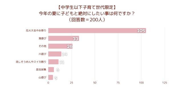 【調査結果】【中学生以下子育て世代限定】今年の夏に子どもと絶対にしたい事は何ですか?1位は『花火大会やお祭り』!