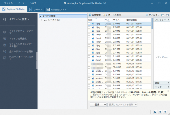 STEP3. 重複ファイルをプレビューして削除