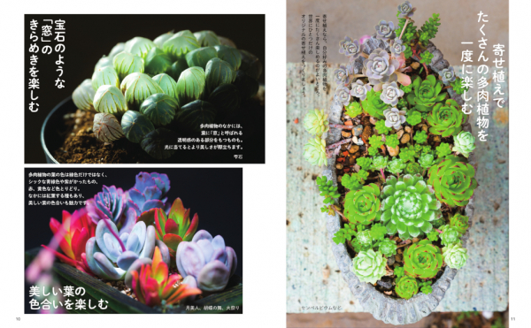 本書は、寄植えや鉢の選び方など楽しみ方や、生育のタイプや置き場所、ふやし方や仕立て直しなどの管理方法なども解説。