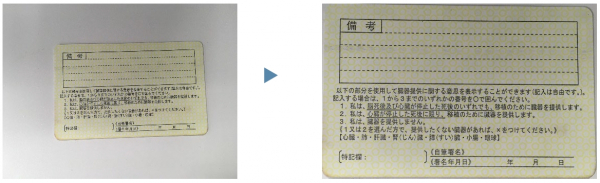 画像内に運転免許証の裏面が含まれている場合、運転免許証の裏面部分をトリミングできます。