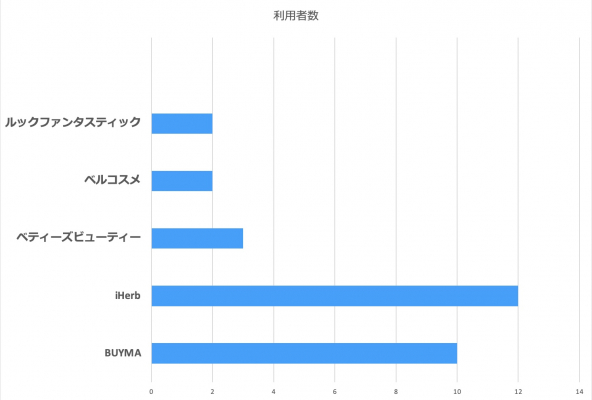 ※アンケートに答えてくれた回答者が利用している海外コスメ通販サイトの集計結果による順位です。通販サイトそのものに関する順位ではありません。