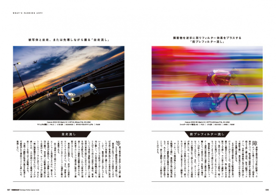 この基本の流し撮りをやってみたいユーザーはもちろん、すでに流し撮りを習得しているフォトグラファーがさらに一歩踏み込み、流し撮りという技法を使って自身の写真を作品の域=アートの世界にまで高められるノウハウ満載の一冊です。