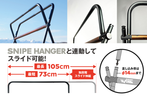 もちろんSNIPE HANGERの特徴である無段階伸縮にも対応ok!