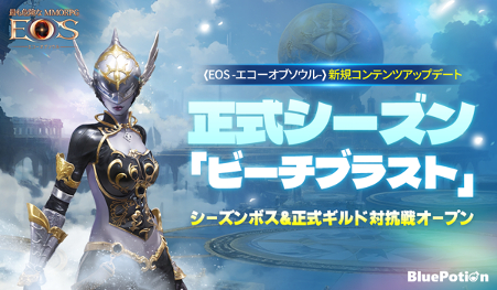Blue Potion Games Co., Ltd.(本社:大韓民国ソウル特別市、代表:Chung Jaemok、以下「Blue Potion」)は、スマートフォン(iOS/Android OS)向けのゲームアプリケーション(以下「ゲームアプリ」)『EOS -エコーオブソウル-』(以下「EOS」)において、2023年7月26日(水)からのアップデートで、正式シーズン「ビーチブラスト」を開始致します。
