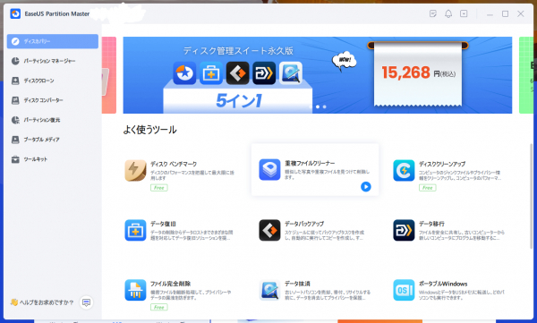 この新バージョンの主な特徴は、ディスクの使用空間を最適化し、パーティションをリサイズまたは移動することで、コンピュータの性能を向上させることができます。また、新しいディスク管理機能を追加して、ディスクの健康状態をリアルタイムでチェックできるようになりました。