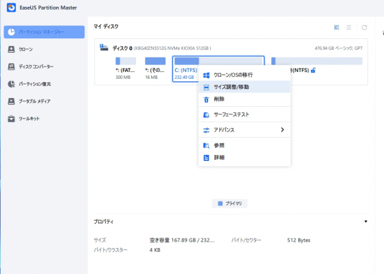EaseUS Partition Master 17.9で簡単にパーティションのサイズを変更する方法