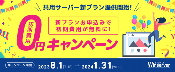 共用サーバーの新プラン提供開始を記念して、2023年8月1日(火)〜2024年1月31日(水)の期間、