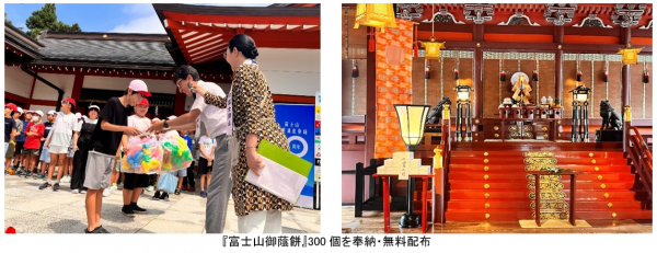当社初 7月10日「富士山お山開き式」にて登山者の安全を祈願 『富士山御蔭餅』300個を奉納・無料配布し大好評 世界文化遺産登録から10年の節目に 浅間大社・村山浅間神社にて実施