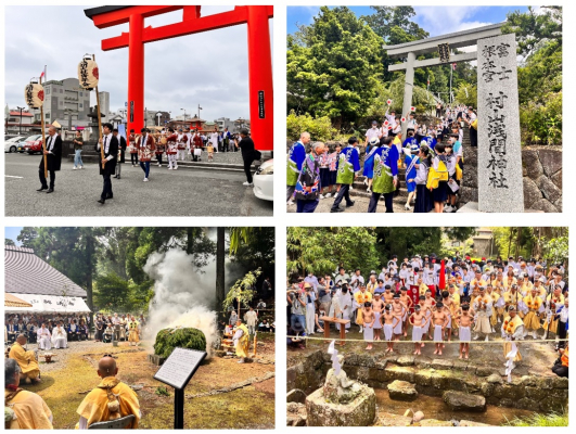 実施内容:浅間大社にて富士宮市長による「富士山夏山シーズン開幕宣言」の後、富士山開山祭神事・玉串奉納。『富士山御蔭餅』200個を奉納し、参加者に無料配布。村山浅間神社では、お山開き式・開山宣言、正式参拝、護摩焚神事の後、『富士山御蔭餅』100個を奉納・無料配布。
