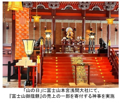 8月11日の「山の日」に目録奉納の神事を実施 『富士山御蔭餅』の売上の一部で灯篭を設置予定 世界文化遺産登録から10年の節目に寄付 富士山本宮浅間大社にて
