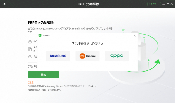 2023年8月28日(月)、DroidKitは最新バージョンの2.1.2.2に更新しました。「FRPロックをバイパス」機能はXiaomi、OPPO、Redmi、OPPOのサポートを追加し、いくつかのバグを修正しました。