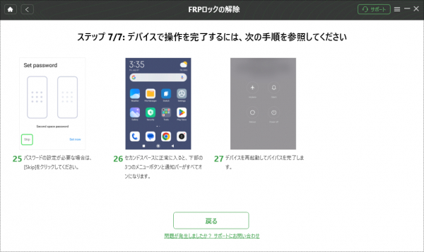 4.最後のステップまで、画面に表示される指示に従って進んでください。そして、デバイスを再起動してGoogleアカウントロック(FRPロック)をバイパスします。