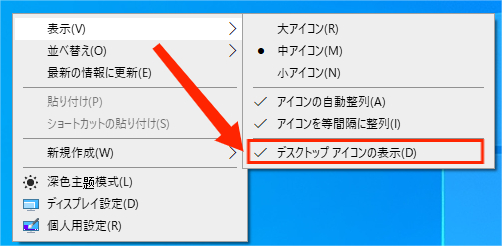 原因1:デスクトップアイコンが非表示に設定されている