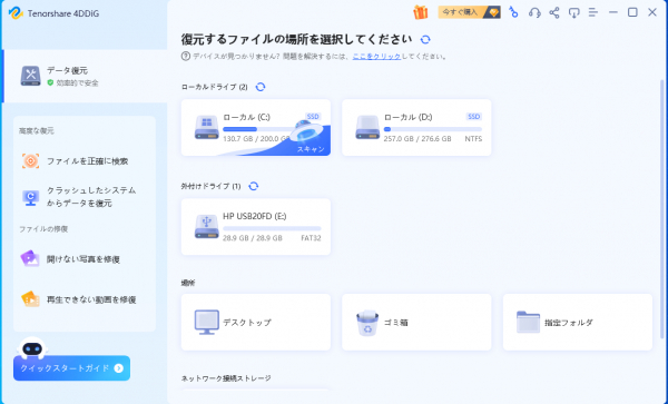 ソフトウェア開発会社Tenorshareが提供しているデータ復元ソフト「Tenorshare 4DDiG」最新バージョンは8月30日(水)発表されました。Windowsパソコンのデスクトップから消えたアイコンやファイルを復元したいなら、Tenorshare 4DDiGを使用すれば、一瞬間に復元できます。