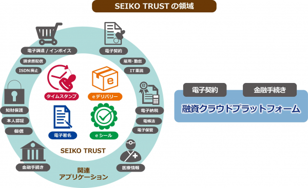 セイコーソリューションズは、「融資クラウドプラットフォーム」を含めた電子契約をはじめ、流通する電子データの信頼性を保証するサービス全般を「SEIKO TRUST」として展開しています。今後も、脱ハンコ、テレワークといった社会情勢の変化やお客さまのニーズにあわせ、サービスの拡充を図り、企業の継続的な成長を積極的に支援していきます。