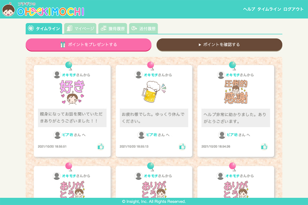 ・メッセージと共に報酬(OH!KIMOCHIポイント)を送ることができます。