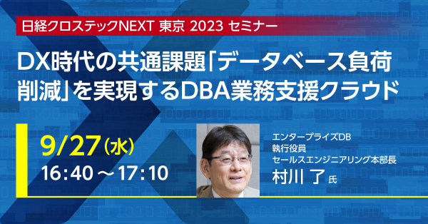 9月27日(水)午後のE会場にて、EDBセールスエンジニアリング本部長の村川了が登壇し、「データベース負荷削減」を実現するEDBのクラウドソリューションについて講演を行います。