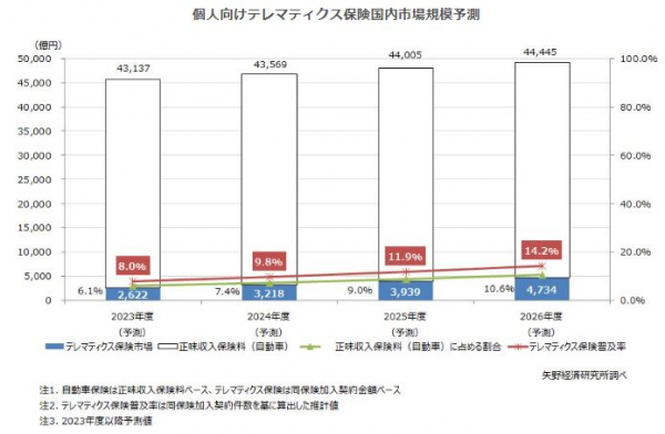 【矢野経済研究所プレスリリース】テレマティクス保険市場に関する調査を実施(2023年) 2023年度個人向けテレマティクス保険の国内市場規模は2,622億円を予測