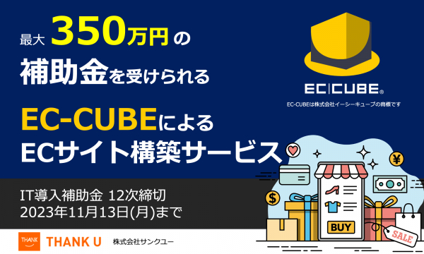 株式会社サンクユー(東京都品川区、代表取締役社長:堀川治)は、2023年10月30日、最大350万円のIT導入補助金の交付申請が可能な「EC-CUBEによるECサイト構築」12次締切分を開始いたします。
