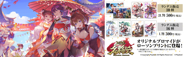 「三国志名将伝」、おかげさまで3周年! ローソンプリントにて、名将たちのブロマイドが10/24(火)より販売開始! 〜総額10万円相当のAmazonギフト券争奪イベントや 新規サーバーイベントも開催〜