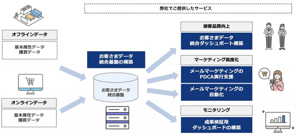 データサイエンティストによるメールマーケティングのPDCA実行支援を実施。お客さまの購買行動や目的別にデータを分析、セグメント化した上で、それぞれのセグメントに合ったメール内容を作成することで、メール開封率や購入率を向上。