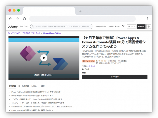 Microsoft Power Platformの初心者向けハンズオン講座をオンライン学習サービス「Udemy」にて配信開始【11月下旬まで無料公開】