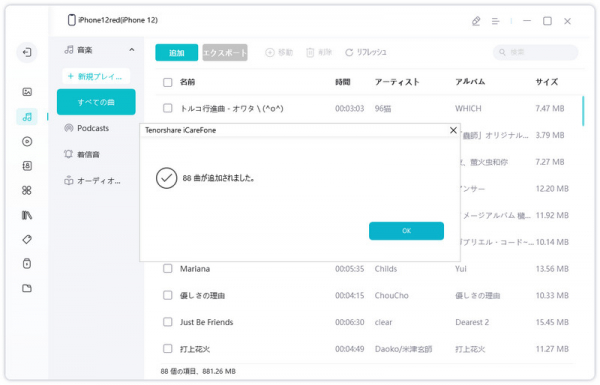 方法2.iCareFoneでCDの曲をiPhoneに入れる【iTunes以外】