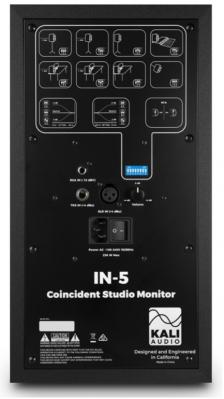 IN-5は4インチ同軸スピーカーと5インチウーファーの3WAYスピーカーです。ミッドレンジ・ドライバーとツイーターが、同じ軸に配置されています。IN-5も点音源として機能します。これにより、スタジオモニターとして理想的な指向特性を実現します。ディテールが明瞭かつ安定して配置され、リアルなステレオイメージを聴くことができます。加えて2ウェイシステムで避けられない軸外ロービング(帯域指向性のズレ) が排除されています。またトライアンプを使ってそれぞれのスピーカーユニットに個別に出力を与えています。そのために新世代のKALI AUDIOモニタースピーカーではDSPを変更しました。3つのスピーカーユニットの出力バランスを自動調整。また置き方によってのEQを設定できます。