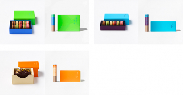 「EYE OPENING LINER」からインスピレーションを得たバイカラーのボックスに、色とりどりのマカロンやケーキを詰め合わせました。マカロンは和素材「桜」や「黒ゴマ」「抹茶」を用いた『Made in ピエール・エルメ』ならではの味わいです。またチョコレートとナッツの風味と味わいのバランスが調和したパウンドケーキもバレンタインシーズン限定で登場します。