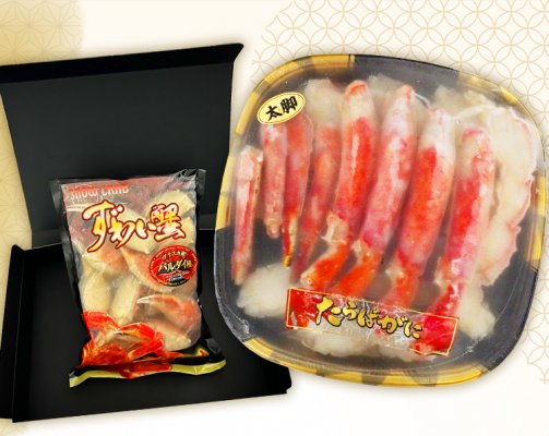 商品詳細 : 大人の手首並みの太さのバレンツ海産タラバガニのハーフポーション2kgと、手に隠れないほどの大きさがあるロシア産希少ズワイガニバルダイ種の爪1kgのセット。水揚げされた漁獲後すぐに船上で茹で上げられ、急速冷凍して美味しさを閉じ込めているので、そのまま解凍して温め直すだけで、蟹本来の旨味と甘みを堪能できます。「蟹は食べるのが大変」というお客様の声にお応えして、タラバガニは殻の半分を切り取ったハーフポーションで、バルダイ種の爪も加工済みでお届けします。