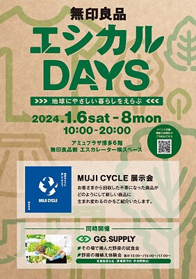【地球にやさしい暮らしをえらぶ】GG.SUPPLYと無印良品 アミュプラザ博多がサステナブルイベント「エシカルDAYS」を開催(2024年1月6日〜8日)