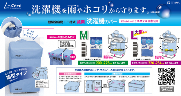 東和産業株式会社(本社:和歌山県海南市、代表取締役:吉田昌弘)は、ロングセラーである洗濯機カバーを、パッケージに使い方・コツの説明動画が見られるQRコード付にし「L-careシリーズ」として2023年12月11日に新たに発売しました。