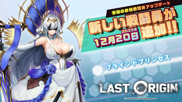 studio Valkyrie, Inc. (本社:韓国ソウル、以下スタジオヴァルキリー)は、好評配信中の次世代美少女×戦略RPG『ラストオリジン』において、2023年12月20日(水)に、新シナリオイベント『目隠し姫と霧の国』を開催しましたのでお知らせいたします。また、新規戦闘員1体及びスキン8種の登場、新規イベント商品の公開、外伝ストーリーを追加しましたのでお知らせいたします。