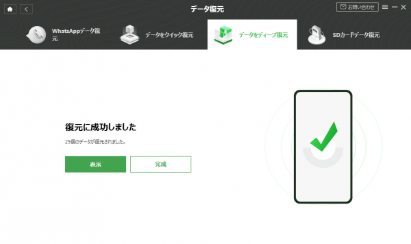 ステップ5:復元データの量とサイズによって完了までの時間が決まりますので、しばらくお待ちください。