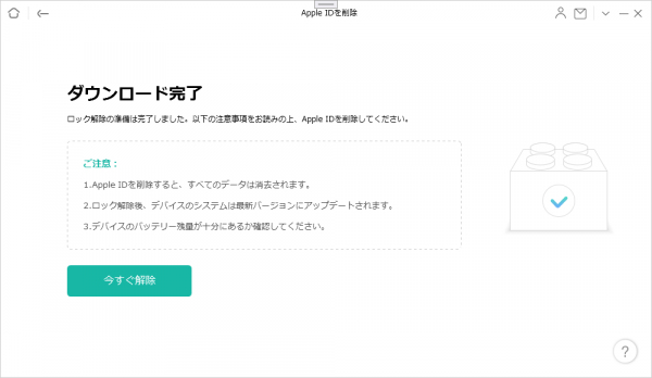 ステップ5.カスタマイズされたファームウェアをダウンロードします。ダウンロードが完了したら、「今すぐロックを解除」をクリックしてApple IDのロックを解除します。