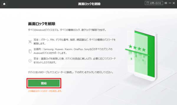 ステップ1.XiaomiデバイスのUSBデバッグモードが有効になっていることを確認してください。「画面ロックの解除」ボタンをクリックしてください。