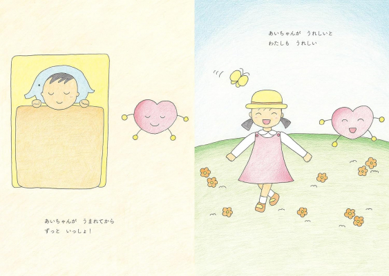 ちいさいころ、あいちゃんとこころちゃんの、きもちはいつもいっしょ。