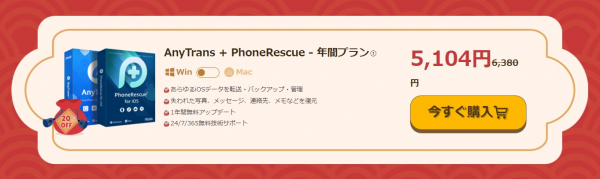 AnyTrans+PhoneRescue - 年間プラン:5,104円(元の価格6,380円)