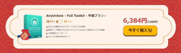 AnyUnlock - Full Toolkit - 年間プラン:6,384円(元の価格7,980円)