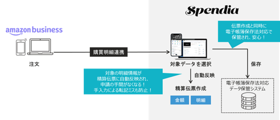 1.Amazonビジネス連携追加Amazonが提供する法人向けのEコマース事業「Amazonビジネス」とAPI自動連携にて「Spendia」に注文履歴データの取り込みを行うことができるようになり、従業員の請求業務効率化や経理部門のチェック作業負荷を削減できます。