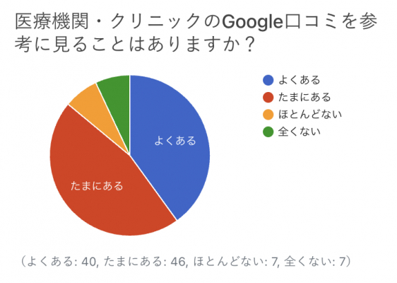 ・飲食店や美容院はそれぞれ専用のサイトやアプリで口コミを見れるが、医療系(特にかかりつけ医に該当するような個人の医院)は一括してまとめて表示してくれるサイトがないのでGoogleの口コミしか頼れないことがあるから(20代/女性/千葉県/正社員)